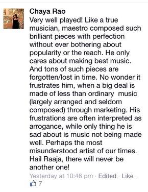 இதில் நடிப்பு, சிவாஜி என்ற இரு பதங்களுக்கு பதிலாக இசை, இளையராஜா என்ற இரு பதங்களை நிரப்பினால் அப்படியே பொருந்தும்.