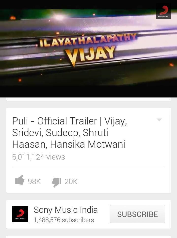 Puli Trailer hits 6 Million views in less than a month !!