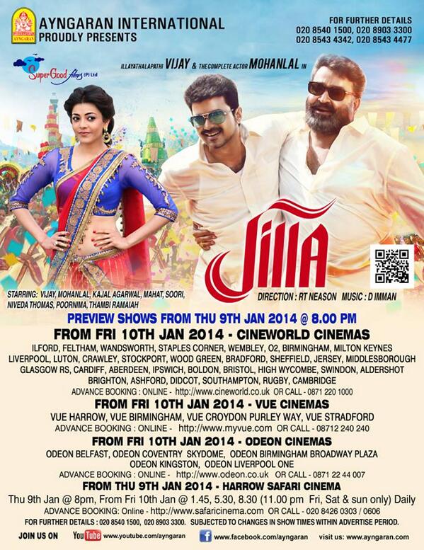 #Jilla UK showtimes . . . will be releasing over 43 cinemas in Uk!