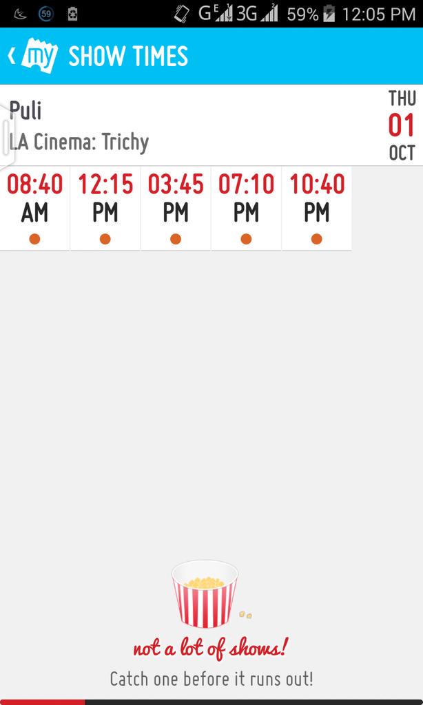 #Puli bookings open at Perambur Brindha. 6 shows on #Oct1. FDFS at 5:30am.