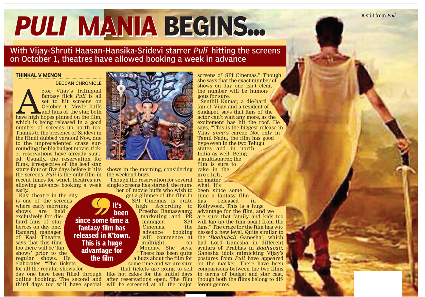 #Sudeep primarily Kannada actor,That didn't help to Cheluvambika pics to find a buyers for #Puli in Karnaraka. Direct release, censor Impact