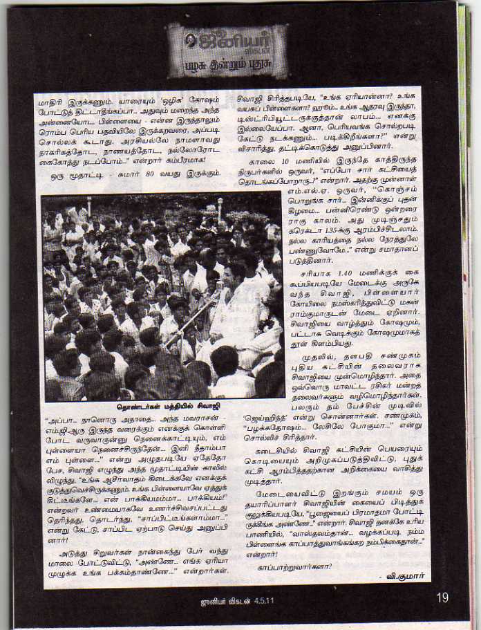 தன் மகன் மணந்துகொண்டு அழைத்து வந்திருக்கும் பிரமீளா, மேஜரின் மகள் என்றறிந்ததும், 'மாயாண்டி, என் மகன் செஞ்ச தவறுகளிளேயே அழகான தவறு உன் மகளை கல்யாணம் செஞ்சுக்கிட்டதுதான்யா' என்று சொல்லும் வசனமும், தொடர்ந்து தன் மனைவியிடம் 'சம்பந்தி வந்திருக்கார், கவனி' என்று சொல்லிப் போகும் இடமும்.