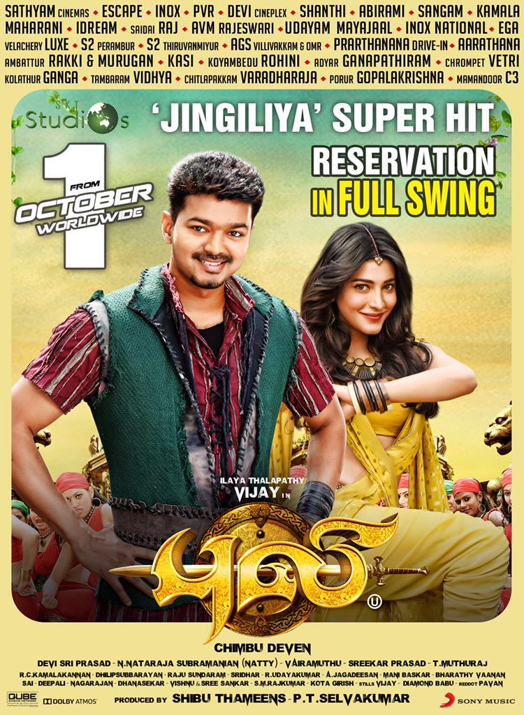 அக்டோபர் 1-ம் தேதி தமிழ், தெலுங்கு, இந்தி என மூன்று மொழிகளையும் சேர்த்து சுமார் 3000 திரையரங்குகளில் வெளியாகிறது 'புலி'