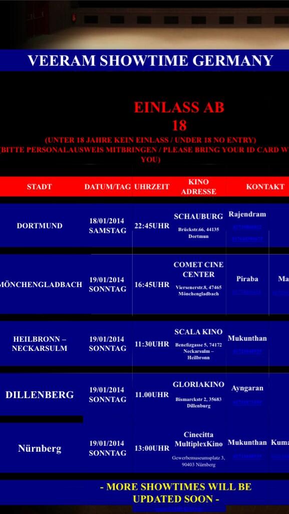 #Veeram at one more location [Dillenburg] in Germany here is the showtime details