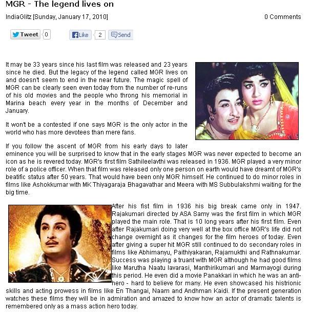 1. தனது பழைய படங்களின் மறு வெளியீட்டின் மூலம், வினியோகஸ்தர்களை அன்றும், இன்றும் இனி என்றும் வாழ வைப்பது இதய தெய்வம் எம். ஜி. ஆர். அவர்கள் மட்டுமே.