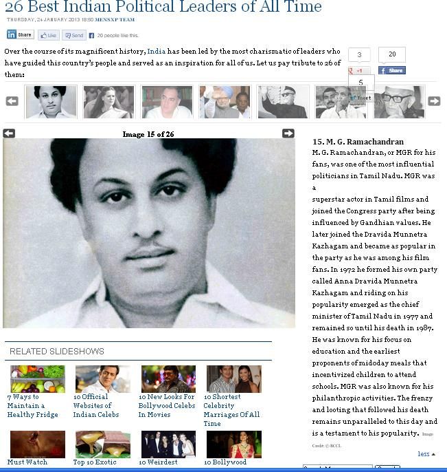 5. சிறு வேடங்களில் நடித்து, தனது திரை உலக வாழ்க்கையை துவக்கி, 11 ஆண்டுகளுக்குப்பின் கதா நாயகனாக நடித்து, பெரும் புகழ் பெற்ற வரலாற்று நாயகன் எம். ஜி. ஆர். அவர்கள் மட்டுமே.