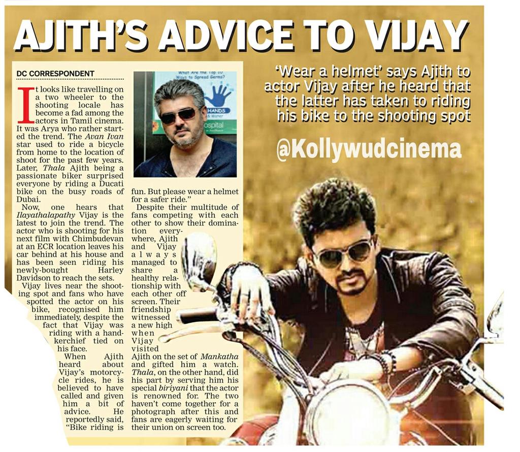 He will definitely advice to wear helmet if he happens to see this...nothing surprised to see this news in this thread, that safety awareness trip of Ajith itself was funny to some people.