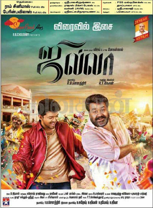Jilla - Audio in 3rd week of Dec date yet 2 be firmed up. Audio by Star Music producer RB Chowdary's own music label.