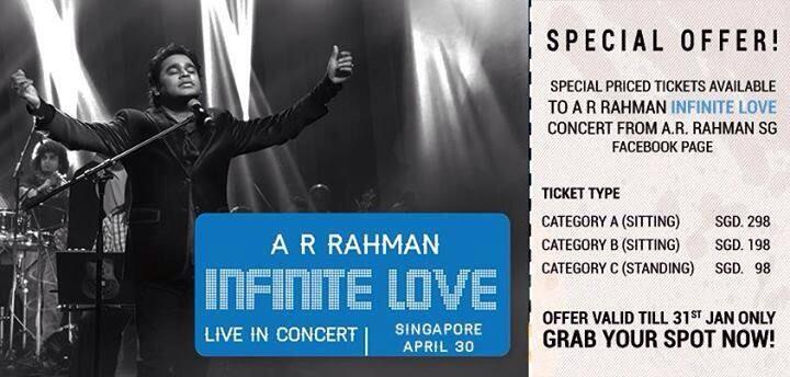 The Infinite Love concert will also be performed in Singapore on April 30, a day after Rahman’s KL engagement.