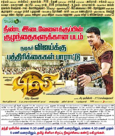 #Puli(Telugu) is doing phenomenal business at AP/Telungana! Occupancy is increasing as direct telugu release #Shivam started to drop!