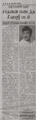ஏதோ வசந்த மாளிகை என்பதனால் தியேட்டர் புஃல் ஆகிவிட்டது என்று சென்ற மாதம் சிலர் ஏகடியம் பேசினார்களாம். அதற்கு மூன்று வாரங்களுக்கு முன் [ஏப்ரல் முதல் வாரம்] இதே கெயிட்டியில் தங்கைக்காக படமும் கிட்டத்தட்ட புஃல் ஆனதை மறந்துவிட்டு பேசினார்கள். [10 அல்லது 15 டிக்கெட்டுகள் மட்டுமே மிஞ்சிப் போனது] இப்போது என்னைப் போல் ஒருவனும் அந்த சாதனையைப் புரிந்திருக்கிறது. இரண்டே மாதங்களில் மூன்று படங்கள் இந்த சாதனையை புரிந்திருக்கிறது என்று சொன்னால் அதுதான் நடிகர் திலகத்தின் பாக்ஸ் ஆபிஸ் பவர். சாதனை சாத்தியமானதற்கு காரணமாக இருந்த திருச்சி வாழ் பொதுமக்களுக்கும் ரசிகர்களுக்கும் நமது மனம் நிறைந்த நன்றிகள்! பட வெளியிட்டாளர்களுக்கு வாழ்த்துகள்!