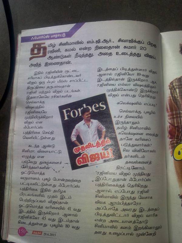 After the Hindu article last week, now Kumudham also says how Vijay is numero uno, when it comes to being a box office king.