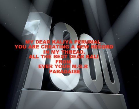 புரட்சித்தலைவர் புகழ் பரப்புவதையே குறிக்கோளாக கொண்டு, அதன்படி செயல் பட்டு, இத்திரியினில், மிகக் குறுகிய காலத்தில், முத்தான 1000 பதிவுகளை வழங்கி, சாதனை படைத்து, மக்கள் திலகத்துக்கு பெருமை சேர்த்து, சிறப்பித்த தங்களுக்கு என் சார்பாகவும், நான் சார்ந்திருக்கும் அனைத்துலக எம். ஜி.ஆர். பொது நலச் சங்கம் (பதிவெண் : 304 / 2007) சார்பாகவும், பாராட்டுக்கள் பல.