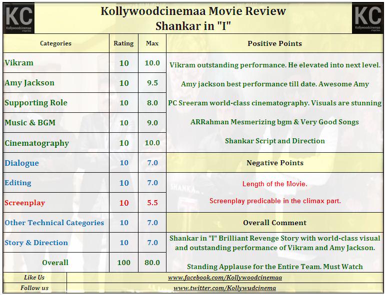Behindwoods, Sify, the Hindu, Deccan Chronicle reviews and all reviews are pretty consistent for this movie. "I" did not impress the critics but I am not sure about the BO performance. It gets a HUGH opening. Will it hold on?