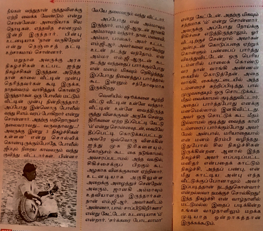 “என்ன வேண்டும்? என்னால் உங்களுக்கு ஏதாவது ஆக வேண்டுமா” என்ற எம்.ஜி.ஆரின் வார்த்தைகள் பழுக்க காய்ச்சிய கம்பி போல் நுழைகிறது.