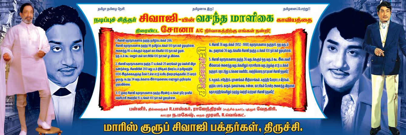 NADIGARTHILAGAM'S ENNAIPOL ORUVAN FANS CELEBRATION AT TRICHY GAIETY THEATRE AND ALSO PAPAER NEWS OF INDIAN EXPRESS ABOUT THIS. CONTINUOUSLY 2ND FILM HOUSEFULL ON SUNDAY EVENING SHOW IN THIS THEATRE AFTER 10 YEARS. BOTH THE FILMS ARE ONLY SIVAJI FILMS