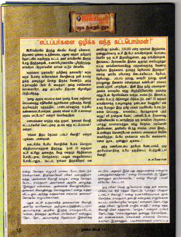 தன் மகன் மணந்துகொண்டு அழைத்து வந்திருக்கும் பிரமீளா, மேஜரின் மகள் என்றறிந்ததும், 'மாயாண்டி, என் மகன் செஞ்ச தவறுகளிளேயே அழகான தவறு உன் மகளை கல்யாணம் செஞ்சுக்கிட்டதுதான்யா' என்று சொல்லும் வசனமும், தொடர்ந்து தன் மனைவியிடம் 'சம்பந்தி வந்திருக்கார், கவனி' என்று சொல்லிப் போகும் இடமும்.