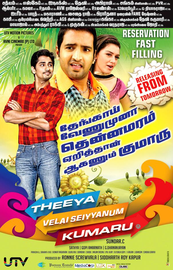 Jigarthanda - Dir : Karthik. Producer : Kathiresan (Aadukalam) . Music : Santosh Narayan. Cast : Simhaa, Karuna, Lakshmi Menon, Siddharth.