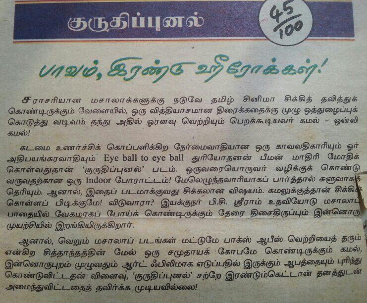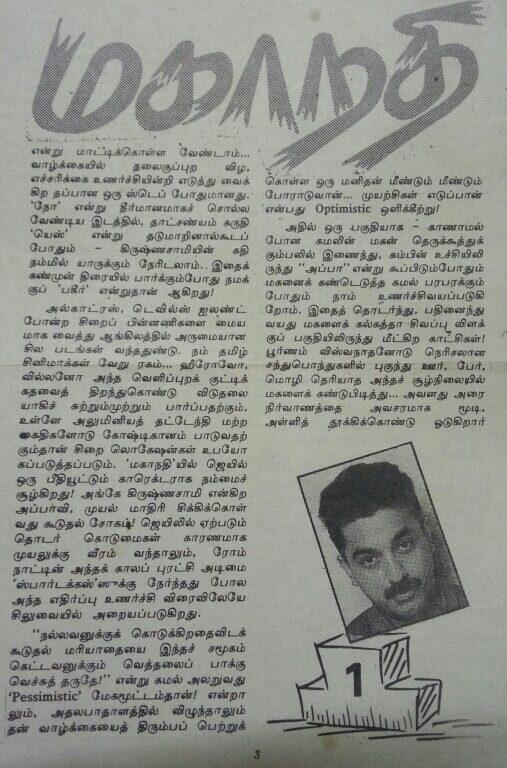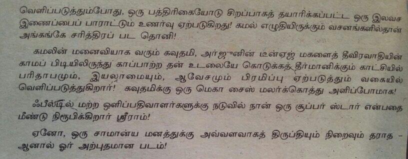அப்பல்லாம் கமல்/இளையராஜா/ரஹ்மான் பேர் பத்திரிக்கை அட்டையில் இருந்தால் உடனே வாங்கிடுவேன்! I have posted them few, in recent days (Vikatan Reviews of Anbe Sivam, Mahanathi, Kuruthippunal)