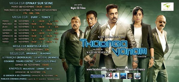 The director says that Thoongaa Vanam will be an engaging thriller and audience will come out of the cinema hall with a big smile. “A lot of cultural differences are there between our country and France, where the script was originally written. The way a French reacts to the death would be subtle while our reactions would be loud”, says Rajesh, whose film is based on a French story.