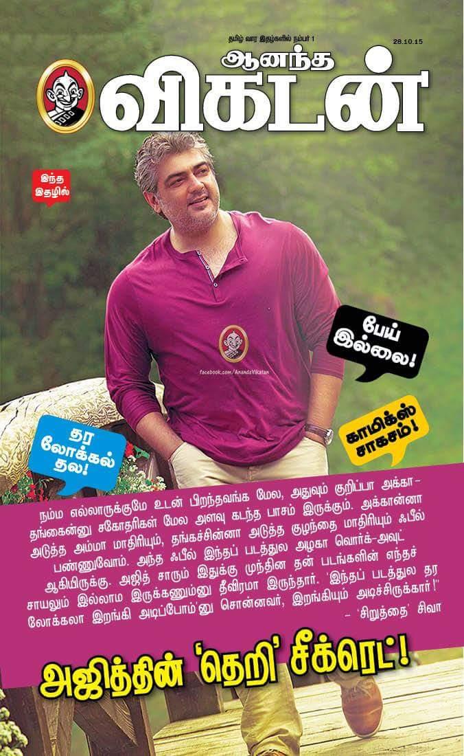Latest #Vikatan Cover features #Thala #Ajith and @shrutihaasan from #Vedalam :-)