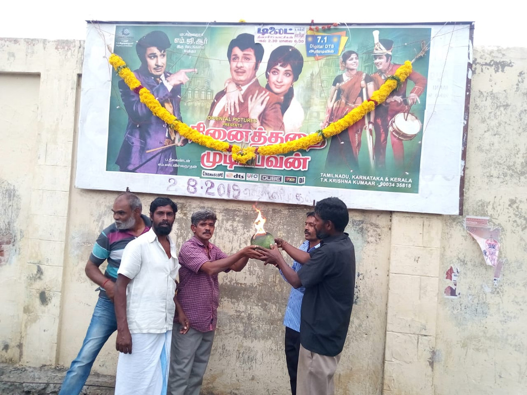 கோவையில் பழமை வாய்ந்த டிலைட் திரையரங்கில் மக்கள் திலகத்தின் நினைத்ததை முடிப்பவன் படம் திரையிடப்பட்டு வெற்றிகரமாக நடைபெற்று வருகிறது. இன்று மாலைக்காட்சிக்கு ஏராளமானோர் வருகை புரிந்தனர்.