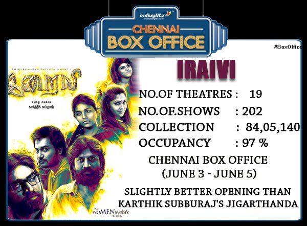 #Iraivi grosses close to 6 CR in TN after the opening weekend.. @karthiksubbaraj @StudioGreen2